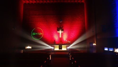 Bildinfo: Bei „LichtMomente“ werden Licht- und Videoinstallationen unterschiedlichster Art nicht nur in die Kirche, sondern auch in anderen Bereichen des gesamten Gemeindezentrums platziert. Foto: Matthäus-Kirchengemeinde
