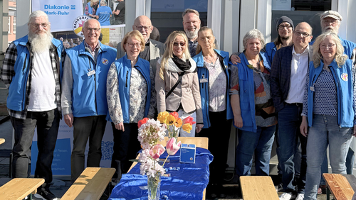 Anlässlich des bundesweiten Tages der Bahnhofsmission im April haben sich Vertreter*innen der Bahnhofsmission, der Hagener Politik, der Diakonie Mark-Ruhr sowie des Bahnhofsmanagements vor der provisorischen Unterkunft der Bahnhofsmission getroffen. Ziel des Treffens unter dem Motto „Menschlichkeit gibt Halt“ war es, die Arbeit der Einrichtung zu würdigen und Einblicke in ihre vielfältigen Angebote zu geben. Bundesweit leisten Bahnhofsmissionen Unterstützung für Reisende so wie für Menschen in schwierigen Lebenslagen. Der Aktionstag dient dazu, diese wichtige Arbeit stärker in den öffentlichen Fokus zu rücken.